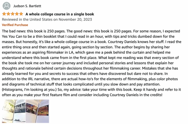 I’ve written a book in which I share everything I’ve learned about making films independently. It’s called “YES YOU CAN – How to Make a Movie for Almost No Money.”